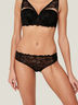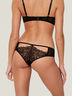 Чувственные трусики модели Бразилиан. Выполнены из чёрного ажурного кружева и эластичной сетки. Задняя часть с фигурным краем и эластичными лентами подчеркнёт волнующие формы.