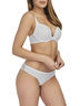 Трусы-бразилиана со средней линией талии. Передняя часть из микрофибры, задняя из кружева.