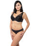 Трусы бразилианы со средней линией талии. Передняя деталь выполнена из гладкого эластичного полотна, задняя – из кружева. Ластовица из хлопкового полотна.