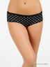 Потрясающие трусики брифы выполнены из тонкого эластичного материала с рисунком - горох. Пояс и проймы на резинке, ластовица с подкладкой. Пояс декорирован кружевной вставкой.