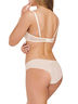 Трусы-бразилиана со средней линией талии. На передней детали симметричные фигурные вставки из мягкого кружева. Задняя деталь из эластичной сетки в подворот. Декор - сатиновый бантик.