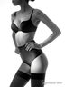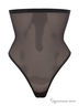 Трусики-стринг открытого кроя по задней детали, высокой посадки для создания визуального эффекта «плоского живота» и формирования линии талии. Сочетание деликатной сетки и нежного тюля контрастных цветов создаёт эффект полупрозрачности, завершая чувственный образ модели.