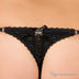 Романтичные трусики стринг с отделкой из рюш. Задняя часть декорирована бантиком из ленточки и металлической бабочкой. Пояс регулируется.