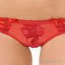 Великолепные романтичные красные трусики с сеткой, отделкой из рюш и с вышитой розой спереди.