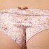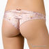 Романтичные трусики бразилиана нежно-розового оттенка с цветочками украшены изящным бантиком сзади и сеточкой — спереди.