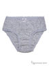 Трусы классические из рибаны. Ткань имеет стильный жаккардовый рисунок в виде повторяющихся букв "G". Модель декорирована маленьким бантиком из атласной ленты. Края изделия обработаны эластичной тесьмой.