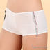 Стильные трусики хипстеры. Выполнены из тонкой шелковистой ткани средней эластичности. Ластовица на хлопковой подкладке. Пройма на резинке. Спереди и сзади вертикальные швы. Декорированы оригинальными контрастными резинками.