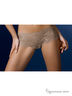 Полностью ажурные трусики хипстеры из гипюра. Сзади полуоткрытые ягодицы.