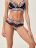Изысканные трусики модели Хипстер. Выполнены из ажурного эластичного кружева. Растительный узор лавандового цвета добавляет образу женственности. Фигурный край позволяет белью быть менее заметным под одеждой.