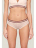 Выполнены из эластичного кружева и декорирована жаккардовой лентой с люрексом.