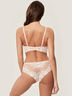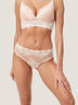 Изысканные трусики модели Хипстер. Выполнены из ажурного эластичного кружева. Растительный узор белого цвета добавляет образу женственности. Фигурный край позволяет белью быть менее заметным под одеждой.