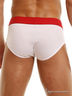 Белые обтягивающие брифы Hustler из мягкой и удобной микрофибры на широкой красной резинке. Трусы с классической посадкой поэтому отлично подходят для повседневной носки.