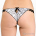 Притягательные трусики-бразилиана выполнены из тонкого и приятного на ощупь материала с принтом "питон" и изящного кружева по бокам. Сзади на поясе – атласный бантик и декоративная каплевидная прорезь. Края трусиков обработаны плоским оверлочным швом сзади, что позволит носить обтягивающие вещи и избежать дискомфорта при носке. Ластовица на хлопковой подкладке.
