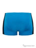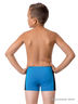 Трусы-боксеры для мальчиков младшего возраста. Оригинальная модель анатомического кроя, полуприлегающего силуэта, классической посадки. Эластичный пояс запакованного типа дополнен логотипированной нашивкой. Широкие боковые вставки черного цвета обработаны контрастными плоскими швами и оформлены отстрочкой голубого цвета.
