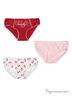 Комплект нижнего белья из эластичного трикотажа 3-х расцветок. Края трусов обработаны резинкой, а пояс декорирован эластичной кружевной тесьмой и бантиком.