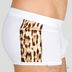 Удобные трусы из мягкого эластичного трикотажа. Трусы декорированы лампасами из атласного материала с принтом, имитирующим леопарда.