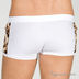 Удобные трусы из мягкого эластичного трикотажа. Трусы декорированы лампасами из атласного материала с принтом, имитирующим леопарда.