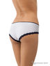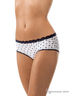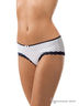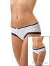 2. Трусы с раппортным графичным принтом во французском стиле. Пояс и изделия обработан резинкой черного цвета с фестонным краем. Нижние срезы трусов оформлены изящным кружевом.