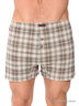 Трикотажные трусы шорты на резинке с застежкой на две пуговицы украшены рисунком.