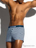 Классические мужские шорты свободного кроя и комфортной посадки. Модель выполнена в модном принте «тельняшка» из хлопчатобумажного трикотажа высокого качества. Широкий эластичный пояс, сплетённый из особых шёлковых нитей, дополнен аккуратным логотипом.