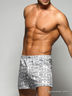 Консервативные мужские шорты свободного кроя, комфортной посадки. Модель выполнена из хлопчатобумажного, принтованного трикотажа высшего качества в модном дизайне “fashion code” и дополнена стильной меткой с логотипом по центру передней детали изделия.