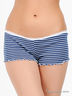 Трусы-шорты из тонкой трикотажной ткани в рубчик. Пояс на кружевной эластичной ленте, низ изделия обработан оверлоком