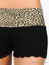 Очаровательные трусики шорты из легкого трикотажа в рубчик. Сверху изделие посажено на широкую эластичную полоску со стильным леопардовым принтом.