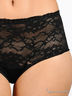 Трусики-шорты из трикотажа в рубчик. Сверху посажены на широкую эластичную полоску из ажурного кружева.