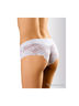 Нежные трусики-шорты из тонкого белого кружева с утонченным рисунком в виде цветков розы почти не ощущаются на коже, дополнительный комфорт и практичность добавляют вшитая внутри ластовица и низкая линия талии.
