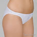 Трусики-слип со средней линией талии выполнены из эластичного полотна. Особую нарядность добавляет отделка на передней детали изделия – элегантная тесьма и изящный
