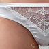 Трусики-слип белого цвета с ажурной вставкой спереди. Пояс с тонкой резинкой.