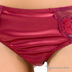 Трусы брифы-mini выполнены из эластичного сатина и вышивки на не эластичной сетке. Средняя линия талии. Верхний и нижний срез обработан тесьмой с ажурным краем. Боковые части трусов выполнены со вставками из вышивки.
