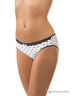 2.Трусики с раппортным графичным принтом во французском стиле. Пояс и нижние срезы изделия оформлены резинкой черного цвета с фестонным краем.