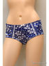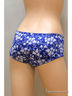 Трусы выполнены из принтованного сатина с растительным рисунком. Спереди два симметричных наклонных рельефа украшенных декоративной тесьмой с рюшей по краю. Спереди по центру украшение в виде маленького атласного бантика. Ластовица из хлопка.