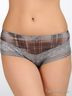 Трусики слипы выполнены из тонкого сетчатого материала и кружева. Пояс на резинке. Ластовица на хлопковой подкладке. Декорированы оригинальным принтом.