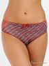 Трусики слипы выполнены из тонкого эластичного материала. Пояс и пройма на резинке, ластовица на хлопковой подкладке. Спереди присборены на резинку, дополнены бантиком. Декорированы принтом клетка.