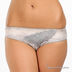 Трусики-стринги из мягкой эластичной ткани с рисунком, украшены кружевом.