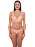 Трусы слип со средней линией талии . Спереди талия подчеркнута широким кружевом, которое гармонично переходит в боковые стороны . Сзади кружево изыскано подчеркивает линию ножки .