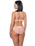 Трусы слип со средней линией талии . Спереди талия подчеркнута широким кружевом, которое гармонично переходит в боковые стороны . Сзади кружево изыскано подчеркивает линию ножки .