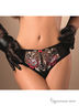 Классические трусики слипы черного цвета, спереди большая вставка из кружева с вышивкой.