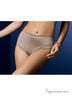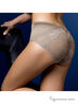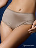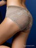 Высокие трусики плотно облегающие фигуру, из мягкой эластичной ткани. Спереди из однотонной ткани. Сзади из кружева в сочетании с тканью. По центру сверху небольшой разрез в виде треугольника.