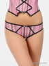 Яркие трусики слипы из тонкой сетчатой ткани с рисунком - полоска. Пояс и проймы на резинке, ластовица с хлопковой подкладкой. Декорированы контрастной тесьмой и металлической пряжкой.