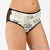 Трусики-слипы. Пояс и проймы с резинками. Хлопковая ластовица. Передняя часть декорирована принтами. Большая сетчатая кружевная вставка сзади.