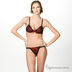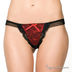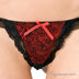 Эротичные трусики-стринг Amelie. Пояс трусиков выполнен из двойной сеточки. Ажурная передняя часть трусиков дополнена атласной вставкой красного оттенка с внутренней стороны. Привлекательный бантик и вкрапление красной блестящей нити в шитье создают романтическое настроение.