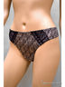 Трусы - стринги выполнены из тонкого жаккардового полотна с растительным рисунком. На передней детали симметричные наклонные рельефы. Вдоль рельефа настрочено кружево. Сзади по центру симметричные наклонные рельефы. Ластовица из хлопка.