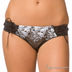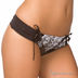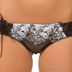 Элегантные трусики стринги черного цвета с белой вышивкой. Спереди трусики декорированы завязками из тонкой ленточки.
