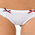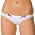 Стильные трикотажные трусики белого цвета с принтом в виде надписи Denny Rose из страз. Спереди декоративные бантики из синих и красных ленточек.
