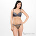 Элегантные трусики-стринг выполнены из тонкого сатина и сеточки, расшитой контрастными нитями. На поясе – два атласных бантика. Изюминка этой модели – оригинальный дизайн пояса сзади. Ластовица на хлопковой подкладке.