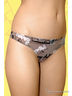 Трусы-стринги классической формы выполненные из принтованной эластичной микрофибры. Спереди по центру маленький атласный бантик. Задняя деталь классической формы. Ластовица из хлопка.