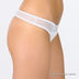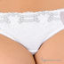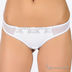 Трусики стринги белого цвета из эластичного, приятного на ощупь материала. Спереди вставка из сетки с хлопковой подкладкой. Трусики декорированы белой и серебристой вышивкой.